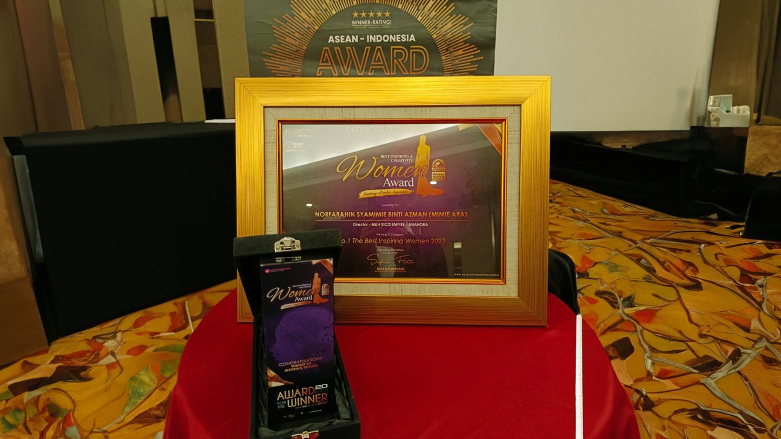 Jakarta, 11 Agustus 2023 – Ajang penghargaan prestisius di Hotel Borobudur Jakarta menjadi momen bersejarah bagi Norfarahin Syamimie Binti Azman, atau yang lebih dikenal dengan Mimie Ara. Ia berhasil meraih dua penghargaan bergengsi sekaligus, yakni “Best Inspiring & Creativity Women Award 2023” dan “Super ASEAN Womenpreneur 2023”.